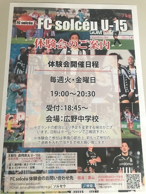 FCsolceuU-15では2023年度新中学1年生(現小学6年生)の「本気でサッカーを楽しみたい」「上手い下手な選手ではなく、上手くなりたい」選手を募集しています。